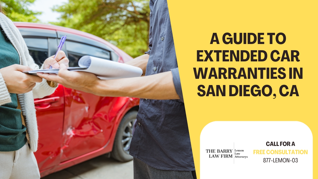 An extended warranty doesn’t change your rights under California’s Lemon Law. The Lemon Law attorneys at The Barry Law Firm can help you sort out the details of your manufacturer’s warranty or extended warranty and determine your ability to recover your losses through a Lemon Law claim. Contact us for a FAST & FREE consultation about your rights under California’s Lemon Law.